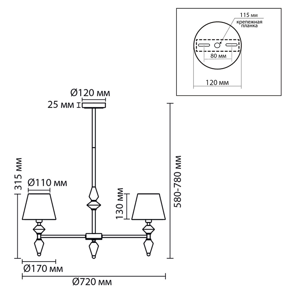 | Բարձրություն (մմ) | 580-780 |