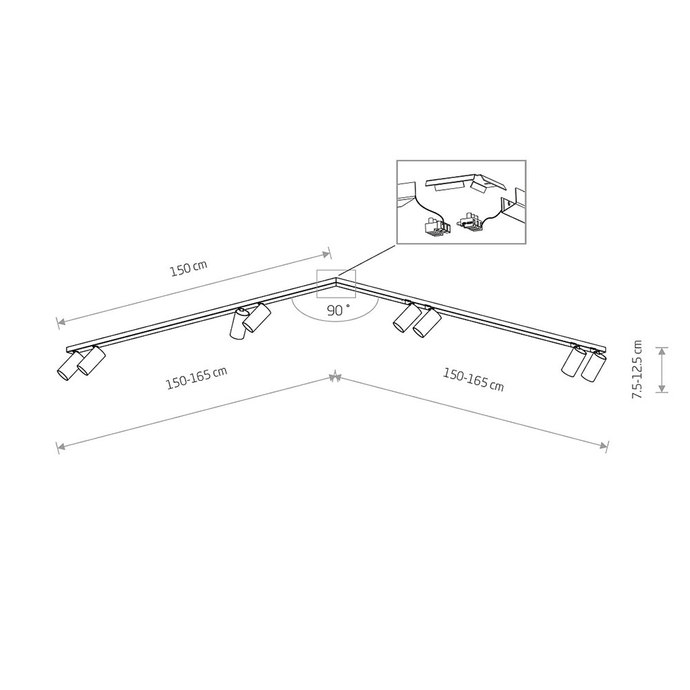 Առաստաղի լուսատու 7721 MONO CORNER VIII 2x150 BLACK